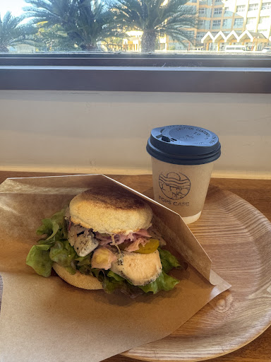海沿いの(川にも面していますが)カフェです。 メニューはシンプルな構成で、サンドウィッチやハンバーガー、各種ドリンクです。 席は店内はカウンター席、テラスにテーブル席が3つほどあります 元々防風林の松林がある所なので、涼しい風が常に心地良く吹いてます。 今回特に美味しいと感じたのがビーチサイドレモネードで、ミントを効かせた爽やかな味で、これはぜひ次も飲みたいと思いまし...