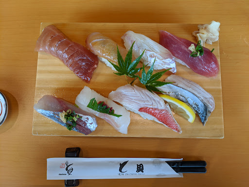 平日の昼間に予約なしでお邪魔しました Google検索で地魚のお寿司屋が美味しいとの評価が多かったのでこの店を選択 店内は日本的な装飾品が壁や棚に飾ってあります 海外の方が喜びそう! 私達が最初の客でした 店内はカウンターと4人掛けのテーブルが3つ、1番奥に暖簾で仕切った部屋が有りましたが広さは分からず 店員さんも着物姿ですし雰囲気は良いですね 地魚寿司と海幸寿司、110円ずつプラスで蟹汁とマグロのつみれのおすまし、海老脚サラダに酢の物を追加 地魚寿司は写真の様に魚名が分かるようにメモ書きが付いてきます ネタとシャリのバランスは私の好みでしたし、温度もネタだけ冷たい事もなく良かったです ヤガラ、マトウダイ、平目、真鯛、金目鯛、黒ムツ……8貫のうち6貫が白身魚!白身が多すぎるのが残念 青魚がもう少し入っていても良いかなと思います 海幸寿司はお得感がありカミさんも満足気 ただ、クラゲの握りは他のネタの方が良いと感じたとの事 海老脚サラダは車海老の脚全体を素揚げした物が8匹分も入っていて、野菜サラダとすごくマッチしてて、次回も絶対頼みたい一品 酢の物も色々と工夫が見られます デザートにサービスでゴマプリンが付いてきました ...