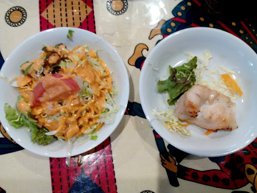 車を降りて入ろうかどうしよう!と考えてたら扉が開いて「いらっしゃいませ」と異国の人が出てきたので中へ!入って左がレジと厨房!奥に2人掛け、4人掛けテーブルがあり、空いてる席へ案内され着席。奥にさらに客席がある。インド特有のBGMが流れる中、2種のカレーセット注文!サラダとドリンクが直ぐ来て、10分程でカレーが来た。カレーは激辛にしたけど自分的には然程辛く無く何処かの料理みたく汗が出ると言うことも無い!ルーは甘め、ナンも甘め!チキンも甘い!やたらと甘い!ナンとライスはおかわり可能。2/3程食べた所でおかわりを聞きに来たので、ルーが余りそうと思いナンおかわりした。でも、1枚がベストかな!お腹いっぱい!2枚目のナンはインドの形してて中がクリーミィー!火が通って無い感じで冷た目!客はポツポツ来てる感じ!支払いして出る時も扉を開けてお見送り!店員さんは日本人の女性以外は異国の人のよう。