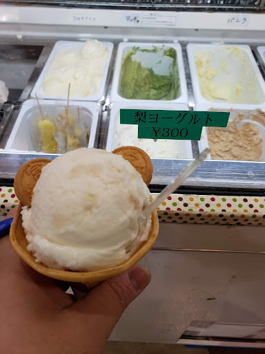 とても暑い日だったのでアイスでも…と思い、私は[梨ヨーグルト]を。 友人は[銭形-きな粉とざらめ-]をチョイスしました。