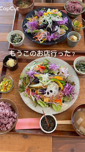 Read more2024.3 久しぶり晴天だったので、ワンコの散歩を兼ねて遠出しました。 最近流行りの倉庫カフェでランチを頂こうと、ドッグランからさほど離れていない河南町の「ナッツカフェ」さんに向かいました。 店舗はDIY感がタップリと盛り込まれた「へぇ~っ!?」 って驚きも含めて上手く造り込まれています。 この日は私達でほぼ満席で2回転目の入店的な雰囲気です。 「ナッツランチ」とドリンクをオーダーします。 店内混雑していたので提供には少し時間がかかりますが、店内装飾やテキパキと接客提供等を見ていると時間が経つのを忘れます。 この日のランチはきんぴら野菜の肉巻きです。 サラダも色とりどりで人参ドレッシング?別盛り副菜も小鉢盛り、雑穀米も古代米入で別添えの胡麻塩が味変に抜群です。 身体に優しい女性らしい発想の美味しいランチで元気イッパイになりました。 COFFEEもハンドドリップで苦目のチョイスッキリでホッコリします。 自家製ドリンクもオススメです。 ランチでお腹いっぱいになったので、食べてはいませんが他のお客様のパフェが豪華で凄く美味しそうでした。