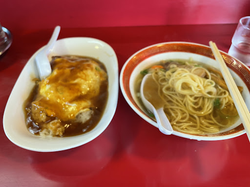 Read more金沢港線から大徳自動車学校に入る手前にあります。 隣に金沢松村町郵便局があり、店の前や横の駐車場は郵便局利用者の駐車場となっていました。 お店の駐車場は小道挟んだ自動車学校の横にあります。 店内は狭く、厨房をL字で囲んだカウンター席のみ。 開店時間からちょっと過ぎた頃に訪問したが、お客さんでほぼ埋まっていました。 水はセルフで奥にあり、狭い中お客さんの後ろを通って取りに行く…。 おばちゃん1人で切り盛りしており大変! お客さん自体は近所の人や常連の人と思われる方かな。時間によっては車校や金市工の生徒さんも来られるのかな? おばちゃん、手だけでなく口も動かして話し相手してました。慣れたもんです。活気がありました。 メニューは店内奥の壁に掲げられており、席によっては(お客さんが座っていると)見づらく、一度立って見に行く手間あり。 ただ、どれも安く迷ってしまいます。 今時、ラーメン🍜350円ですよ! ちゃんとチャーシューまで入ってます。 人件費・光熱費考えると儲けあるの?と要らない心配してしまうが、コショウが上にちょこっと掛かり懐かしい中華そばって感じでオススメですよ。看板メニューです! あと、隣の人が美味しそうに食べていたので天津飯もオーダー。 楕円形の器で出てきたのは斬新。餡がしつこくなく、食べやすかったです。 暑い時期に熱いものばかり食べたが、お店が狭いのもあり、クーラーがガンガン効いて汗だくにならず美味し...