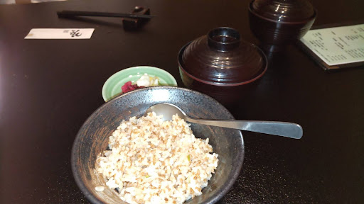 本日のメニュー 1、白魚の梅肉和え(新鮮な白魚とスッキリした梅肉) 2、ネギのホワイトスープ(優しくてコクがあります) 3、ヒラメのカルパッチョ(新鮮なヒラメとレモンとハーブの洋風ソース) 4、トロのお刺身(最上級の中トロ、舌の上で溶けます) 5、ウニ(北海道、はだての生うに) 6、蟹のサラダ(スッキリしたタルタルソース) 7、桜ご飯の蒸し物(上品な風味) 8、スズキのチーズ焼き(スズキとチーズの味のバランスの良さに感激します) 9、鯨の尾の身のお刺身(ヒゲ鯨の中のナガス鯨、臭みが全然無い) 10、合間のタケノコ(北九州) 11、ステーキ(抜群の焼き加減で、レア) 12、ソバメシ、赤だし、香物 13、デザート
