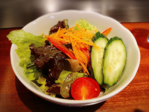キッチンは男前マスターが担当 カウンターのみなので、どの席でも鉄板が本当に目の前で焼いてくれてる最中も目で楽しめるし、お腹は減ってくる💦 最初はサラダ 個人的にステーキ屋さんのサラダは好きです ドレッシングが美味しいところが多い 言うまでもなくこちらのドレッシングも美味しい 次はメインのお肉 能登豚はそこまで脂っぽくなく、アッサリとしている 特製のソースがまた合うし美味しい 能登牛はとにかく柔らかくて美味しい 生姜醤油、塩、わさび、ニンニクチップがついているのでどれがいいかなーと全部試してみたけど、個人的には断トツで生姜醤油 めちゃめちゃ合う お肉を生姜醤油で食べたことなかったかもしれないけど、まさかこんなに合うとは… 付け合わせのもやし、キノコも美味しく頂けたそして初めての経験、そうめんかぼちゃ?も食感も良く美味しい