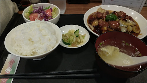 土曜日のお昼どきに訪問。駐車スペースは店頭3台と店横に一台分の不整形のスペース。店頭の端が空いていたがいやなところに柱があり前からは回り込めない。店横の不整形のところから入ろうとし段差があるなと思っていたところあとから来た軽四がエッチラオッチラと店頭に回り込んできた。仕方なく店横に停めた。中はレストラン然として、スッキリしている。カウンタ-5席とテ―ブル席が4卓。先客がいて繁盛している。カウンターに座り、ランチセットの中から酢豚税込み960円を注文。ご飯の大盛りは無料。お値段はチョット高め。仕切板や個別の消毒用のボトル設置などコロナ対策はバッチリ。暫くして着膳。酢豚は肉を揚げてから調理されていて、野菜はシャキシャキ。アツアツです。食材は豚肉、玉ねぎ、タケノコ、ピ−マン、シイタケで人参はなし。味は甘め。生野菜のサラダは冷たくて旨い。ス−プも普通に...