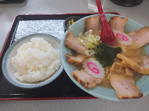 ラーメン(懐かしい味) チューシュー・メンマ・ネギ・ナルトと定番の中華そば(海苔は無いです) スープが意外にオイリー、鶏塩でしょうか味はしっかり(濃いかな)してます ご飯のお供なおかず的ラーメンだと感じました