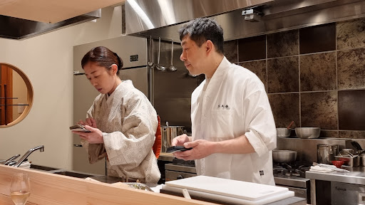 This is our third week travelling in Japan, and the Omakase meal we had at Shikiha was by far the best meal we have had so far. If we could give a six star rating, Shikiha would have certainly deserved it. The six seater counter restaurant is run by Chef Kenji-san and his wife, Asumi-san. There was a private room with a table of four, but the dining experience is seated around the counter watching Chef Kenji-san prepare each dish. They were fully booked when we walked into the restaurant a week back, and the first available slot was almost a week later. It was definitely worth the wait. Both the service and the food were excellent. Chef Kenji-san also prepared the Omakase to accommodate our special dietary restrictions. It was much appreciated. We had a taste of many different Japanese dishes, from sashimi, seasonal side dishes, grilled fish, teppanyaki, and ginger rice. Every dish was well presented, and the ingredients were flavorful...