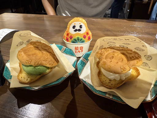 A lovely tea shop in Kanazawa’s tea street district with a warm, traditional vibe. The décor is cozy and gives you the feeling of a classic Japanese tea house. Their taiyaki comes in three flavors, and the custard one is especially delicious. You can even enjoy an ice cream–taiyaki burger, which is a fun and tasty combo. They also serve Kanazawa local coffee, which has a rich aroma and an amazing taste — one of the best I’ve had. The shop owner is very friendly; they asked where I was from and even learned how to say “thank you” in Myanmar, writing it down in the shop. It felt really welcoming. On top of that, they offer a free stamp for visitors and have small handmade souvenirs for sale. A charming place to enjoy a break, try local flavors, and feel truly at home. Highly...