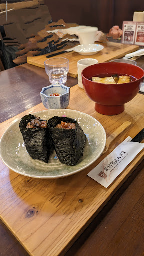 【食べたもの】 ◇味噌屋のおにぎり定食 寝かせ玄米のおにぎり2個と旬の食材を使った季節の味噌汁です