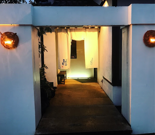 店の外観や、店内はかなりのオシャレスポットです。ひとりでふらっと来たので、バーのようなカウンタ席です。 お酒は飲めない日で、そばが目的だったのでドリンクなしでしたが、お通し(500円程度)はちゃんとついてきました。昆布の歯応えがすごく美味しく、飲める日だったらと思います。。あとお猪口にゴーヤと色んな果物が入ったドリンクが来ましたがすごい味でした。ゴーヤのガツンとくるかんじ。