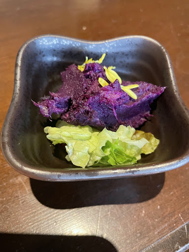 お通しが紅芋のポテトサラダ、¥450は流石に高い、、、 全体的なコスパは悪いです。 味は鮮度関係ない物はそれなりといった感じです。 海ぶどうは食感良くなかったです。 ぐるくんも少し生臭い感じでした。 沖縄の風味を感じるには良いかなといった印...