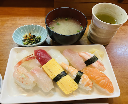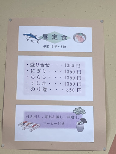 The sushi is a lot for just ¥1350 thick cut on every piece. Together with steam egg and clam soup. The soup is what I like most which is not miso soup but really clam seafood soup. The space is big with tatami. Comfy restaurant....
