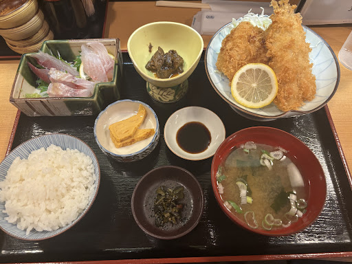 ②料理の見栄え 刺し身は自分で切ったほうがマシなレベルでした。一口目で口内に中骨が衝突。フライは2種類あって写真のエビフライを楽しみにしていたがたぶんアジフライとサワラフライ?でした。残念。
