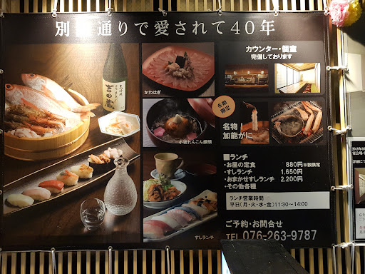 A long-established sushi restaurant within walking distance from Kanazawa Station. During the season when crab fishing is allowed, U can eat Kanazawa's brand
