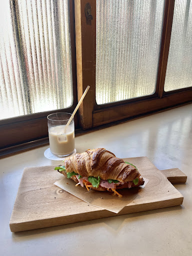 食事: 頼んだのはハム・チーズ・ルッコラのクロワッサンサンド、(Lサイズは約700円)ティラミス、エスプレッソ、アメリカーノと、プラナーチャイ。クロワッサンサンドは特に美味しく、焼きたてのパンがサクサクで、全体的にバランスもサイズも丁度良かったです。プラナーチャイは少し甘かったが、美味しかったです。(しかし、スパイスの味が好きじゃない方にはおすすめはしません)ティラミスは丁寧に作られて、優しいコーヒーの味をしたケーキとチェリーが本当に美味しかったです。その他、エスプレッソは飲みやすかったが、アメリカーノはエスプレッソのような味がして、通常のコーヒーを飲みたい人にはおおすすめはしません。