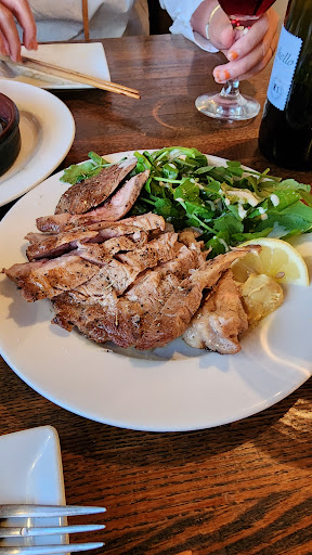 私はイタリア料理やスペイン料理をそれなりに食べてきましたが、ほとんどの場合、簡単に感銘を受けることはありませんでしたが、バカロは理解を超えて私に感銘を与えました。 正直に言うと、私も最初は懐疑的でした、日本とイタリアの料理が違うの?! しかし、彼らは見事に成功しました。 ガンバス アル アヒージョなどのシンプルな料理は、甘い金沢海老とおいしいオリーブ オイル、ニンニク、そしてバゲットの組み合わせが完璧です。 鯛のカルパッチョ、素晴らしい。 赤ワインのボトルと、これまで食べた中で最もジューシーで柔らかい豚肉で締めくくりました。 Bacaro...