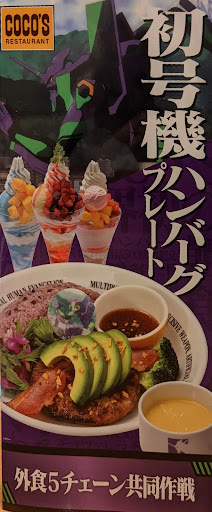 そんなココスは家族の思い出の場所。 だが、今日は誕生日でもないのに娘がココスに行きたい(^o^)と言い出し、夕方はみんなバタバタしていたのでココスで食事することに決定。 店に入ると、何故かエヴァンゲリオンが目に飛び込んできた?