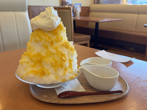 The shaved ice here is enormous, making it almost impossible to eat without spilling. I chose the mango almond shaved ice, topped with whipped cream and bright yellow mango sauce. The flavor balance was excellent, but the size made it a bit challenging to finish. This experience, though, adds to the fun and is perfect for sharing with friends.