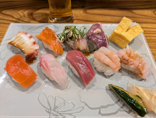 I ordered the Hyakumangoku omakase (3500 yen) which consisted of 9 pieces of sushi and each piece was fantastic. My favorites were the tuna and the shrimp (bottom row, third and second from the right), but every piece was clearly made with a lot of care and super fresh fish.