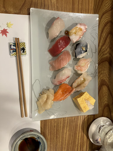 Read moreIf you don’t know the meaning of omakase, let me tell you, it means: I leave it up to you. And this is how it works you sit down in this little gem, you chose the number of pieces you want to eat, and then you’ll leave it up to the chef. Oh boy, don’t over order, because they keep coming! We ordered 27 pcs but received 36 pcs plus the daikon radish, miso soup, tea, sake and treats. The chef and master was alone when we arrived and was amazing seeing him work, he was fast, yet precise with attention to details. An amazing experience out of the crowds. Every single piece tasted fantastic and fresh. You must visit this place. If there are other customers before you the chef will serve their sushi first, making each one by hand, so there is a wait- but during this time he still makes sure you are comfortable and attended to- the most amazing host despite limited English. In the dark, the restaurant was difficult to find, so check the pictures for reference. Price was extremely honest, we spent in total...