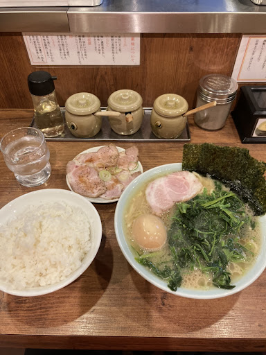 ラーメンはおいしいです。接客も非常に良いです。 粉っぽく固めの麺で量が多いです。茹で加減は普通で他店の硬めくらいではないでしょうか。 スープは家系らしい豚骨醤油で味は濃厚ながらサラサラしており量が多く、スープを絶対に飲み干したい人には強敵かもしれません。 と言うか麺もスープもすごく多いですね。家系と言えば海苔とほうれん草とご飯ですが、ここはラーメンが大盛すぎるのでごはんを頼むならラーメンは小がおすすめです。