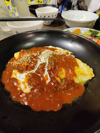 Read moreBit of a hidden gem. Basement restaurant easily missed in passing. Specialises in Japanese rice omelettes, and delicious they are. Owner prepares the meals and serves the drinks too, very laid back atmosphere, with background music, it's okay to have a few drinks first before ordering food. Only about 10 tables so certainly not crowded. Went there twice in the evenings, about 10K Yen bought us three beers, three wines, a couple of fantastic rice omelettes and two deserts....