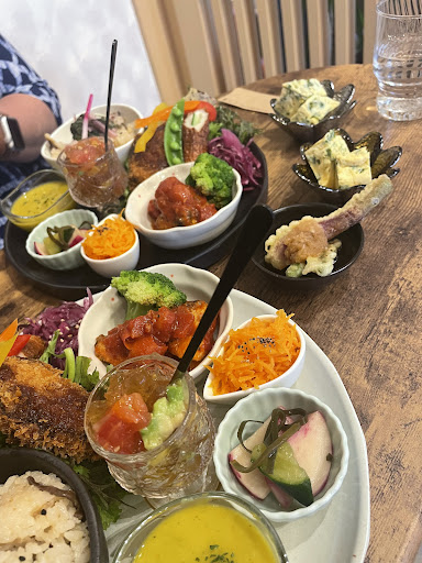 The lunch set included a wide variety of dishes, such as fried fish + croquette, salad, cooked veggies, pork and onions, a cold pumpkin soup, steamed egg, ginger rice, and more. Each dish was cooked and seasoned very well, and the owners were all very kind and friendly! It was a lot of food, but we managed to finish everything because it was very tasty :) From my understanding, a lot of the veggies are grown by the owners / locally sourced. Definitely recommend if you're...