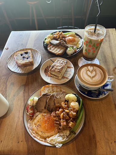 The first day we got there a little too late to order food (you can’t order food after 12:30 PM), but we were able to get pastries. Keep that in mind if you want breakfast - lots of places stop serving earlier than you expect. We tried the lemon loaf bread and the blueberry loaf, and both were absolutely delicious. We also ordered drinks I had a warm honey latte and my partner got an iced café latte. Both were good, but the honey latte was definitely the standout - and honestly the reason I had to come back another day.
