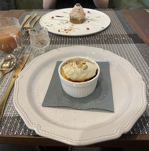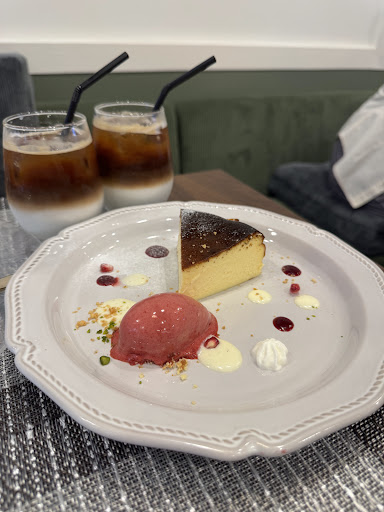 今回いただいたのは、 ・季節のパルフェ (¥1,780) ・バスク風チーズケーキ 自家製アイス添え (¥1,050) ・カフェラテ (¥550)
