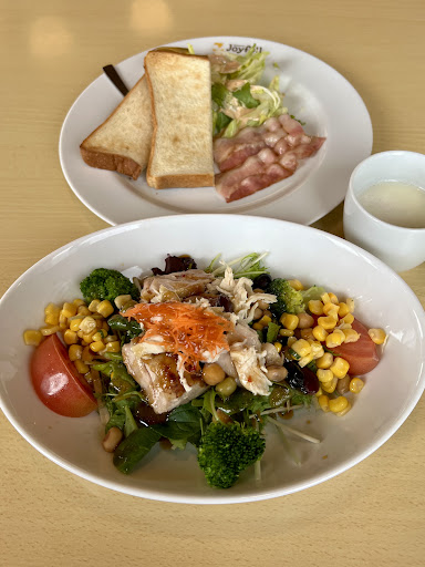 Read more私は夜勤明けで行く事が多いので朝9:30頃ですが、年配のご夫婦がモーニングを食べに来られてたりサラリーマン風の人がパソコン持ち込んでたり… 1人で店に入るのが苦手だった私でも入りやすく1人でも「お好きな席どうぞ」と言って貰えるのが嬉しいです☺️(混んでるランチ時間は違いますが) 注文もスマホで出来るので簡単☺️ アプリを入れればスタンプが貯まり毎日ログインしたり歩いたりするだけでもスタンプが貯まりジョイカフェが無料になったりお得もいっぱいです😆 コラボメニューや季節メニューなど飽きない工夫もされています。 何せお値段がありがたい。 モーニングやランチメニューのお値段を見てびっくりしました。 私は夜勤明けでお腹ぺこぺこ状態で行くので299円(税抜)のベーコンモーニングと別のお料理をいつも頼みます😋 モーニングにジョイカフェ付いてるし、ご飯かパンも選べるし野...