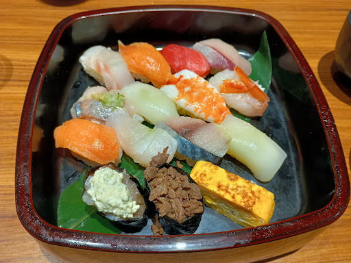 Read more土曜日の夕食に利用。17:30頃入店。席は3分の1位埋まってました。その後、食べてるうちにどんどん入店。最終的に待つ人が発生。早めでよかった。注文はタブレット。お寿司は充実してるけど、サイドメニューは少ない…。うどんとか子どもが食べられるものがもう少しあったらうれしいなぁ。それからアジやらイワシやらの定番ネタも炙り以外はなかったです。 お寿司は…、美味しいですね!何より新鮮! 本日の10貫盛(1600円位)、美味しかったので2人前食べてしまった。子供用のミニサイズお寿司は美味しくなかったです。 デザートの桃のゼリーは器が切り抜いた桃でした。こだわりですね。 トータル一人当たり4000円強。他の回転寿司よりは高いですが...