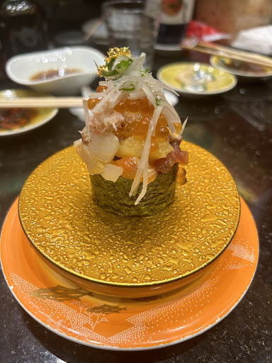 Read more・金沢、新神田合同庁舎近くの回転寿司。まいもん寿司白山インター店と建物の構造・広さは似てます。駐車場は少し入りにくいかも… ・平日のお昼、一人で贅沢なお昼ご飯しました。 1、首折りいわし 350円 2、あおやぎ(ばかがい) 390円 3、春の三貫盛(真鯛、甘海老、ゆでほたる烏賊) 470円 4、炙り三昧(縁側、サーモン、赤海老) 470円 5、蛍烏賊の天ぷら 360円 6、能登サラダ軍艦 120円