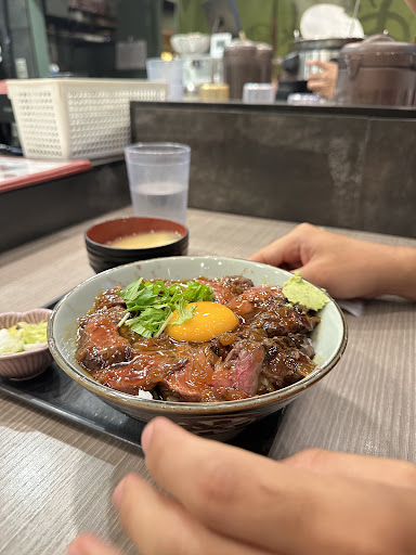 Small meat restaurant inside Kanazawa Station known for beef & pork bowls served with miso soup.