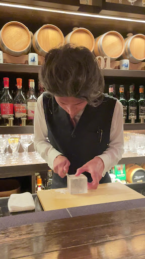 Get in and get in early! We watched Taka and his apprentice turn folks away once the 7 or so seats filled up. Regulars at that!!! Taka made some really beautiful classic cocktails that have a slight twist to them which gave us a fresh perspective on some classics like the Old Fashioned and Manhattan (which is what I ordered) while my wife had a Mezcal Margarita and a fruit drink that he made using fresh squeezed Japanese grape fruit. A chill night and good conversation (though limited due to our inability to speak Japanese and Taka's limited ability to speak English). But it makes no difference because we still laughed and communicated just fine. I mean, they serve water with a beautiful piece of ice that he hand crafts one by one (pre-made) and even put on a ice cutting show for us (because of course he's an ice master who taught some classes in Los Angeles and elsewhere). We highly recommend Kohaku Bar (which means 'Amber' for the color of whiskey) and even personally referred two of our friends to it a couple of days after us.