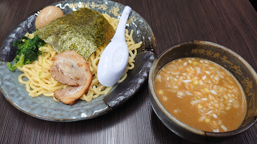 別日につけ麺。 麺は太めではあるが、思ったよりもかたい。 スープは熱くて濃いめだが、普通のラーメンの味がイメージできるようである。麺にしっかり絡んで食べやすい。チャーシューが焦げた味がしてやや閉口するが、概ね食べやすい一品だと思う。割りスープは出汁をとったもののお陰かどうかは分からないが、結構飲みやすい。 が、この日の接客は個人的にはいただけない。 食券を取りに来た店員だが、マスクの影響を差し引いてもボソボソしていて聞き取りにくく、その話も符牒のようなキーワードを上から目線のような口調で。こちらのオーダーを食券にメモするときはしゃがんでいるものの、肘をテーブルにつけた状態なので、逆に横柄に見えるし、一人だけ疲れているようにも思われてしまいかねない。 たった一人の接客態度であっても、それを容認するという意味で店全体に影響を与えかねない、ある意味貴重な例かもしれず、自分自身、普段の言動から周囲に悪い印象を与えていることは...