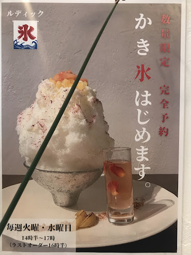 今年の夏はかき氷をされてます。 夏のルディックかき氷(2000円程度) 14:30~提供ですが、ランチ後に頂きました。 口溶けが良く、最近のかき氷店と比べても トップの口溶けの良さ。 桃はちょうど熟しており、桃のソテーも 感動する美味しさ。 かき氷の中にも果物が入っており 薔薇の香りや、珠洲塩のアクセントが 飽きさせず頂けます。 付属の薔薇シロップをかけると 味の変化も楽しめます。 白湯で冷えた内臓と、気持ちを和らげます。