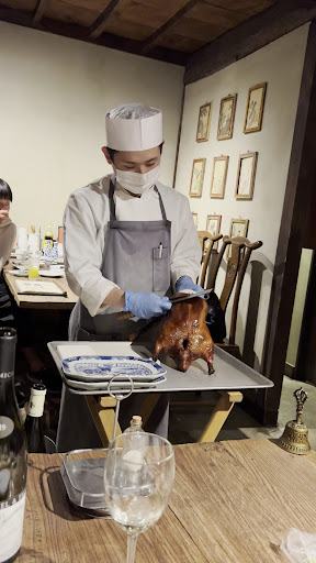 Paid ¥2800 for the Peking duck course which consisted of a vegetable dish that was ordinary like what i make at home, some gooey spicy prawn concoction that used those frozen imported prawns, a soup that was too salty with over cooked noodles that were all clumped together and a small cup of that white chinese pudding you get at any chinese restaurant. Small servings, poor quality ingredients, poorly made dishes. Very unimpressive.