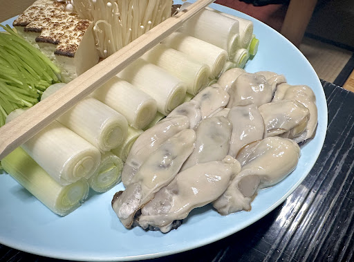 Read more一見さんお断りの超予約困難店。二年前の予約を持っている方に誘っていただきました。 メニューは名物の牡蠣鍋のみですが、六人以上なら牛鍋も一緒にいただけるそうです。 お座敷に案内されると二つのテーブルに鍋が置かれています。奥が牡蠣用、手前が牛用の鍋。仲居さんが二卓の間に座って調理から取り分けまで全てやってくれる式です。 出汁には扇状の味噌、そして鉢にたっぷりのおろし生姜。味噌が溶けて良い香りがしてきたところにでっぷり太った牡蠣を投入。ちょうど火が通った頃合いで、一人一人の溶き卵に牡蠣を入れていってくれます。 味噌味の牡蠣をすき焼きみたいに卵で…?と口にすれば、熱・味噌・生姜で牡蠣の旨味がこの上もなく引き出され、卵黄でコクまで足されて大変なことになってしまっている。フライやら生やら焼きやら色々な食べ方がありますが、これぞ牡蠣の最適解と言っていいのでは? 同じように食べる能登牛もすき焼きの一桁上を行く美味しさ。深谷の極上ネギ、美味しい出汁を吸った生麩等のザクもたまりません。 牡蠣とお肉のおかわりはいかがですかと言われれば、もちろん満場一致でお願いします。 なんと最初の倍くらいの量が来た。おかわり前提、きっとしない人なんていないんですね。 後半戦のお肉は酢でどうぞというので試してみると、こんなにサッパリ食べられるものかとビックリ。自宅ですき焼きの時マネしてみよう。 シメの食事は牡蠣ご飯、ふた口ほど食べたら出汁茶漬けでどうぞとどこまでも美味しく幸せ。 デザートはデコポンを一個まるまる渡してもらえます。これがまた甘いの。 空前の満腹、空前の幸福感。お酒も冷酒に焼酎といただいて、お会計はなんと15,000円程度。予約がず〜っと一杯なのも納得です。 声をかけてくれた方がまた二年後に予約を入れることに成功していました。本当に二年でも待つ価値はありますので、一年半くらい経ったら牡蠣食べたいアピ...