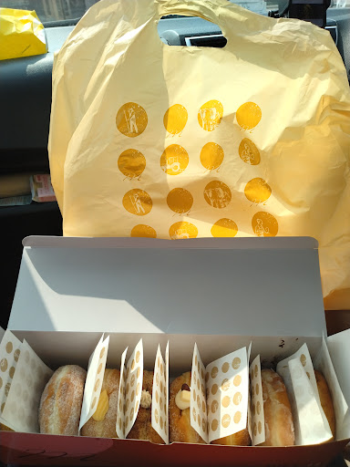 Read more息子の学校近くに新しく出来たよって教えてもらい、なかなかの人気店で行列ついてたとの事だったのでどんなドーナツか気になり早速来店🎵 朝一は寄れなかったが確かに列になってた(笑) 自分が行ったのはだいたい15時頃だったけどすんなり入れた😃 でも、入り口にオーナーさんかな?ドアの前に立っていて、ドアを開けてくれたがこの炎天下で大変だなぁと思ってしまった😅 んで、中に入るとドーナツがカウンターに並んでいて店員さんにドーナツの種類と個数を言っての注文🥯 苦も無くスムーズにドーナツGET(笑) さて、ドーナツは柔らかくてしっとりとした食感?あぁ表現が下手すぎ💦 生クリームは乳を感じる私好みでした🐮 あんバターはもうちとあんこ感欲しかったかなぁ👍 んで、かかってる系のチョコとミルクはこれでもかぁと言う位甘かった(笑) シュガーもきな粉も甘かった(笑) ただ、残念なのはスコーンも売っていたが、こちらはパサパサしてて今一つ味がしっかりしてなかった💦 でも、ドーナツ的にはお土産に持って行っ...