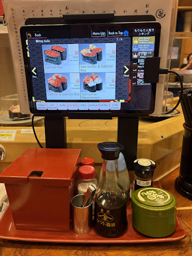 Ā Ā Ā Read moreGreat fun. The seafood sushi was super fresh, yummy and fast. At 2pm on a weekday in Sept I waited 35 mins for a seat. You need to get a ticket from the reception desk by using the tablet (you can switch it to English) and choose between counter or table. The counter has the conveyor belt continuously moving around in front of you with a variety of options that you can take any time. The tables have one end of the table connected to a ātrackā that a Shinkansen like train brings food out to as you order it. To order, there is a tablet that has all the options including specials on it (you can switch the tablet to English) and as you order it on the tablet the food is given to you (counter) or sent on the train (table). Price is by what you eat. The different colour plates indicate how much each dish was (and the prices are on the tablet when you order. Overall, fun lunch...