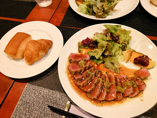 福久こげたん横にあるお店。初めての方には分かり難い場所にあるかなとは思いますが、8号線から来れば分かりやすいかと思います(ファミマまで行くと行き過ぎなので要注意) ランチもディナーもお世話になったことがあるのですが、どちらもとてもオススメです! ランチはお手軽な価格でお腹いっぱい食べられますし、メニューも豚、鳥、牛、魚などなど価格帯に分けられた物となっており、その日の気分(そして予算…笑)で決められるのが凄く有り難いです。 ランチで出てくる前菜も色んな物が楽しめて軽く食べられるので正に前菜!といった感じ。個人的にはがっつり前菜が出されるとメインを美味しく頂けないのでこのくらいが調度良いです。 上記の前菜+本日のスープ+メイン+パン(かライスか選べたはず)+メインがランチコースのラインナップです。此方に追加料金でデザートを付けることも出来ます。 ディナーはピザやパスタ、アヒージョ、肉料理や魚料理など様々な種類から選べるのでお酒を飲む方もがっつり食べる方にも大変オススメです。複数人で行ってシェアするのが良いかも?