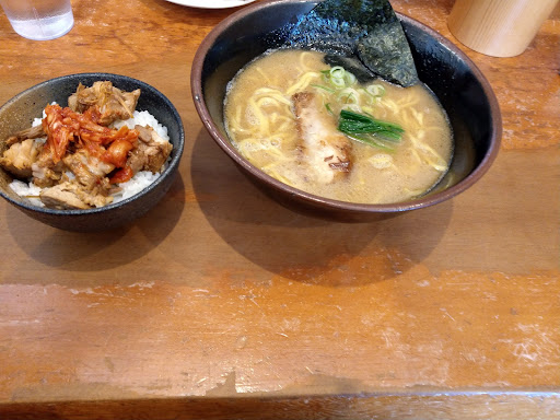 食券制です 食券機の前に立っても文字と値段しか書かれていません A定食ってなんだ? 食券機の横にわかりにくくメニューが置いてありました A定食・・・ラーメン+まかない丼 B定食・・・ラーメン+ご飯+高菜 A定食を食べたのでA定食のレビューです 期待するやろ! 1)らーめんについて 豚骨魚介系です よくある鰹節振りかけたような感じではなくちゃんとした魚介系です 豚骨の濃い味にあいます 麵は普通のストレート麺 卓上にはラー油やニンニクはありますが胡椒や一味はありません たっぷりのニンニクとともに食べると大変美味しいです 具は期待するな~! 2)まかない丼について いや丼じゃねーないよね! どう見ても茶碗 (写真参照) チャーシューの切れ端とキムチです 正直ラーメンに合わない ラーメンががっつりとしているのでご飯の具の味が掻き消えてしまう 味の変化としてキムチをのせたのだろうが、ラーメンと対局な味なので打ち消してしまう 結果、ラーメンと白いご飯のイメージしかない ご飯のほうにスプーン1杯でもいいから「豚丼のタレ」みたいなソースをかければもう少し評価は変わったかもしれない 3)総評 ラーメンは美味しいが定食としては微妙・・・ まかない丼は完全に「まかない」で客に出す完成度は皆無 店が近くでラーメンだけ食べるのならまた行きたいが(以下略) 今回は唐揚げも注文しました 「どこかでお目見えしたような・・・。」 と駅で見知らぬ人に会釈されたような感じがした これって某ラーメン屋のから揚げと同じ? 逆にどこ...