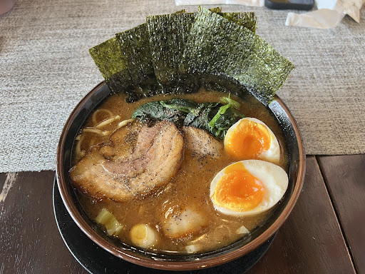 こい口醤油とんこつ+のり玉+チャーシュー1枚トッピング。麺硬め プレパスでのり玉トッピング無料だったのは有り難い。麺の種類は聞かれませんでしたが、醤油豚骨、こい口ともに太麺でした。言ったら細麺になるのかな? 個人的には太麺一択なので良かったですが。 味は濃厚な感じが好きなので、こい口にしましたが、バッチリ醤油が強い感じ!うん、普通に美味い。 ただ、普通の醤油とんこつの方が、カナリいいバランスで豚骨の風味も程よく感じられるし、そこそこ濃厚だったので、どちらかと言うと普通のやつがおススメかなあ。 チャーシューはトロトロまではいかずだったが、割と柔らかめでまあ中々よし。味玉はトロトロで食感はいい感じだが味は付いてなかったかな。 家系ラーメンっぽいなと言う感じですね。 限定とかも美味しそうだから気になるねー。 接客丁寧で中々よし、席は椅子タイプのテーブル席3卓とカウンターで、こじんまりしてますが、赤ちゃん連れにも優しい対応で良い。 ベンチシートが有れば尚良いが、、、 卓上トッピングが割と豊富でコレは良かった。 土曜昼訪れたが、たまたまか待ち無しで入れましたが、すぐに満席近くになりました。 あと店内チラシによるとイエローハットで車検すると色々特典があるそうな、、、 冷凍自販機ありました!! こりゃカナリいいですね、大体冷凍のラーメンて美味いからなぁ、、欲しかったけど今回は保冷バッグ無し...