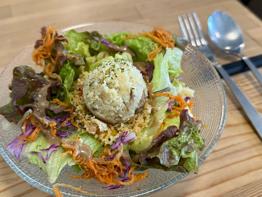 サラダも侮れません。シリアルのパリパリ感、シャキシャキのレタス、野菜それぞれの個性が一皿にぎゅっと詰まっていて、フォークを進めるたびに違う表情を見せてくれます。