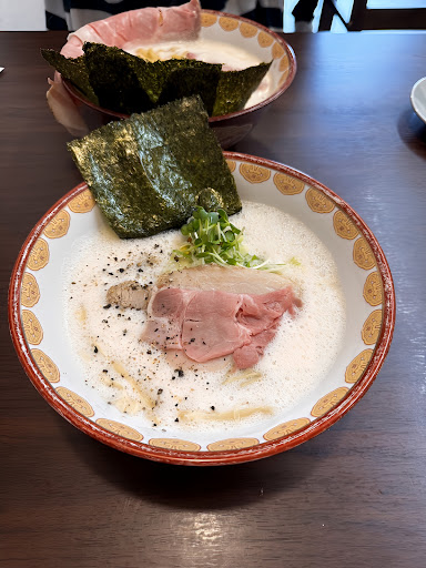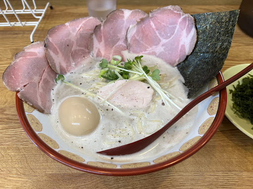Read more久しぶりに訪問、鶏白湯塩 太麺、お得トッピング、岩のり、麺硬め。 相変わらず全体的に美味い! レアチャーシューじゃ無い方の通常チャーシューがめちゃくちゃトロトロでやばかった、こっちをトッピングで増したいなあ、、言ったら出来るかな? スープも安定の旨さ。石川なら鶯系か士郎商店のどちらかが白湯トップかなぁ個人的に。 意外と普通の白湯で間違い無く美味しいのって石川だと選択肢が少ないような、、 石川で正統派な白湯食べようとすると、街中じゃ無いとこの鶯系の金糸雀は残念ながら潰れたし、じゃあ鶯系は街中過ぎて中々普段行きづらい、士郎商店なら街中行かなくてもまだ、、!しかも美味い。 他の白湯の店は士郎商店、鶯とは大分差が有るから行く気にはならない。 士郎商店の白湯は太麺が選べるのも良い、太麺白湯は唯一無二かな、石川だと。これは継続して欲しい。 太麺、細麺どっちが美味しいかは人によるし。 選べるのが素晴らしい。