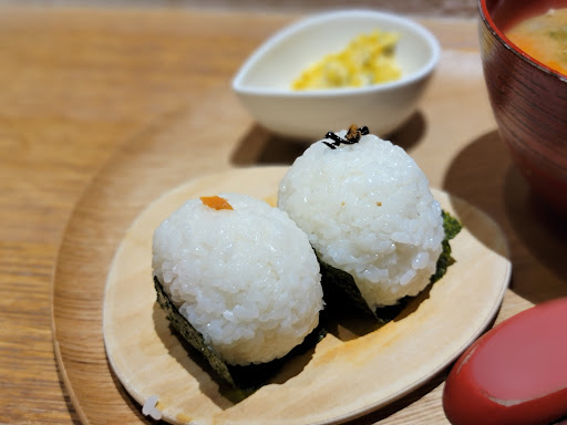 Miso soup & seafood bites produced in a minimalist, airy restaurant with compact seating.