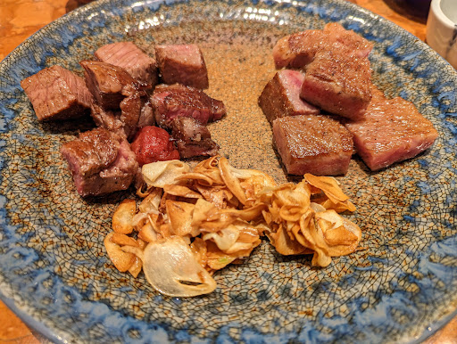 The real reason I gave 4 stars instead of 5 is because I felt rushed to finish. Once our steak was served, our chef told us that when we're ready for dessert we should go into the next room. Indeed, we left the teppanyaki table to go to the next room for dessert, and it felt like they were trying to squeeze in another customer at the grill. This isn't the most expensive steak dinner I've had in Japan, but it wasn't cheap either. I would've expected to enjoy my meal in one spot...