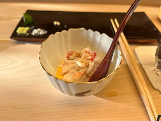 Read more28000 yen for the omakase course. Booked through my hotel with no issues. It's the sliding door right by the entrance, on the right is a staircase that goes to a bar not the restaurant. There's only 8 seats. Didn't have to say my name or confirm anything and was directed to my seat right away. The chef looks very serious while preparing, but has a great friendly smile when explaining the dish. The chef and the assistant chef explained the dishes well in English. Highlights were the oyster miso soup, dish with the pink sauce, and the shrimp nigiri. The miso soup was incredible. There was a small piece of shell left in the crab and rice dish, but I wasn't bothered too much by it. Total was 21 dishes (ate too fast and forgot to take pictures of 2 of them) and around 100 minutes. I think the seatings when the sun is still out they open the garden up to let the light and air in. Overall service was...