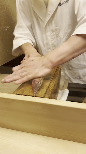 Kanazawa style is big on otsumami, at least half of the courses were pre-nigiri. Things I noticed: light on vinegar for the shari smaller sized nigiri than a lot of newer Tokyo shops uses a lot of charcoal grill for otsumami, very nice IMO EXCELLENT dashi, which was featured in a tai (bream) soup. Very light. Honkarebushi was shaved in front of us, with each piece having a sliver of mold attached. fun, talkative chef and clientele (was there with locals and repeat customers and it was a relaxed atmosphere;cf. many Tokyo sushi houses of this quality with their temple-like atmosphere).