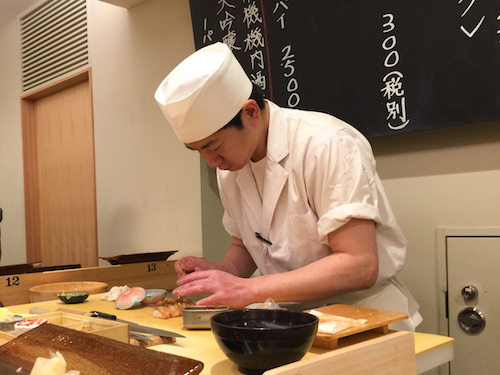 The place is pretty small, but luckily we were seated immediately at the counter and welcomed by the chef’s friendly greetings. My husband and my son ordered the 10 piece set (3500 yen) and my daughter and I ordered the 8 piece set (2500 yen). They make ‘Edomae sushi’ (Edo is the old name for Tokyo) which means you don’t dip your sushi piece into soy sauce before you eat them. Each piece came out perfectly seasoned. Every piece we put into our mouth was heavenly. We have eaten many sushi in the past but something about this sushi was new and refreshing.